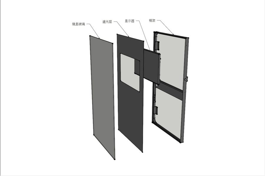 功能简介 Brief Introduction ○ 镜面电视是一种镜显玻璃与显示设备结合的复合产品。 ○ 使用者可以通过自己的意愿控制镜面与显示的转换。 ○ 可以根据需求定制如:镜面大小、显示尺寸、核心配置、内存大小等。 镜面电视简单结合示意图