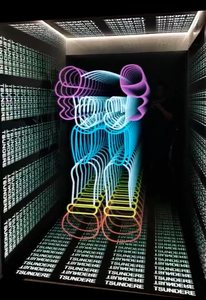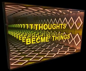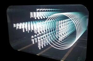 千层镜,又名深渊镜、隧道镜。是一种装饰装置。由半透射镜片+中间层+发光物体+反射镜片组成。处于中间层的发光物体通过半透射镜片与反射镜片的多次反射形成多层叠加的影像。千层镜能在有限的空间内呈现一种深邃的视觉效果,常被应用在装饰地面、墙面及吊顶。